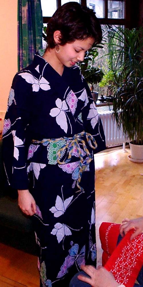 こちらでは普通の浴衣姿でも珍しいから、仮装になります。これを着ていくのは結局止めたらしい。今の季節にはちょっと寒い。