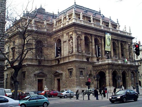 オペラ座。明後日に新演出で初日を迎える「イエヌーファ」/ヤナーチェク作曲 の垂れ幕が掛かっていた。