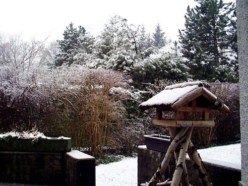 今朝、7時半頃の写真です。結局、今日は、一日中降り続いて、夕方には結構積もってしまいました。