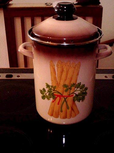 直径18cm、深さ25cmほどのアスパラガスを縦に入れてちょうどぐらいの大きさです。
