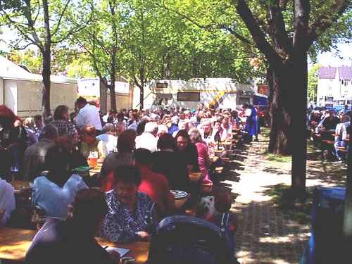 ちょっとしたビアガーデンもあります。天気も良かったし、ちょうどお昼時でしたので、けっこう一杯の人でした。