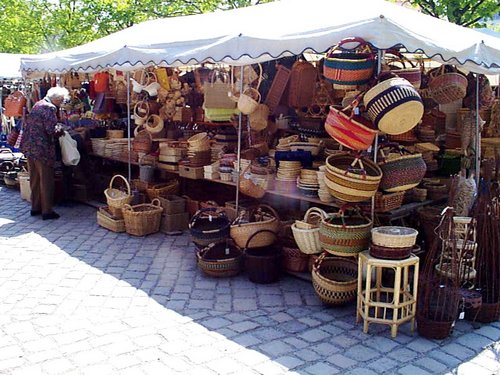 藁や籐を使って編み上げた買い物籠だけを売る店。ドイツの主婦はまだ買い物籠を下げて買い物に出掛けます。