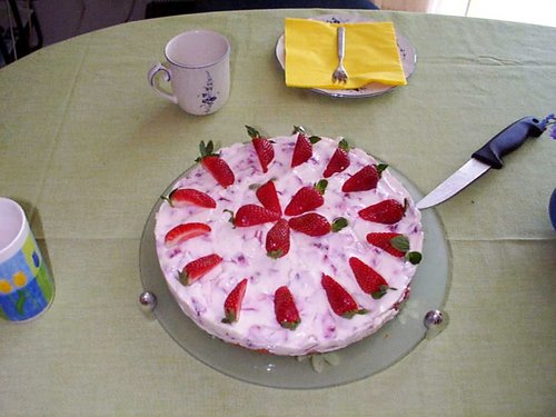 "Erdbeertorte mit Ricotta" だそうです。イタリア風のイチゴケーキらしい。あっさりとしておいしいです。(^_^)
