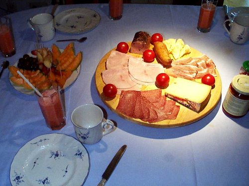 お客様があった時はこの様にいろいろと並びますが、家族だけの日常の朝食は、ごくごく簡単なものです。(^_^;)