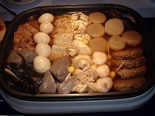 今夜のメイン料理である「おでん」。いろいろな材料が入っていて、やはりこれは日本から持ってきていただいた材料なしでは難しい。思いがけなく大量に捌けて作った友人も驚いたり喜んだり。(^_^)