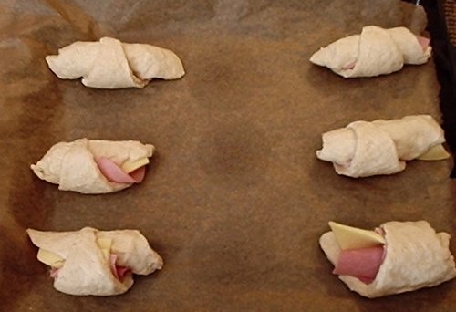 オーブンに入れる前のハム入りクロワッサン風。
