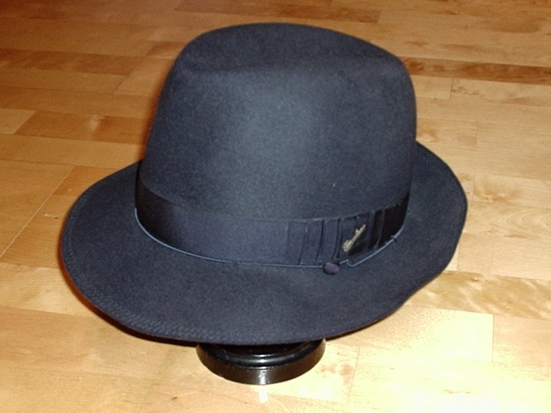 現在よくかぶっているボルサリーノ。色がわかりにくいですが深い青色です。