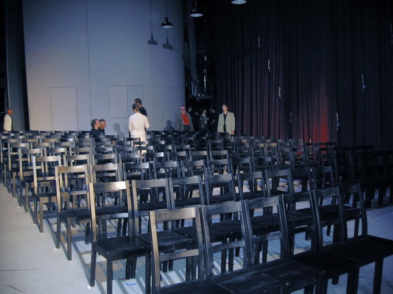 開演直前の舞台。教会の中の場面で、これから序曲が始まるところです。