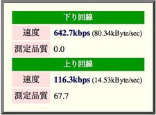 PowerMac G4 (1.25GHz)のデータ。下り方向で642.7kbsの速度が出ている。