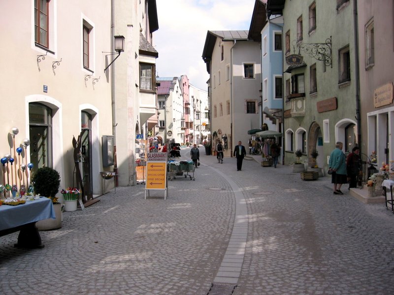 Rattenberg の街並み。道の両側にガラス製品を作って売る店が軒を並べている。