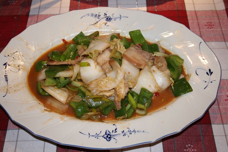 初めての挑戦。うまくいった。(^_^) 少し食べ始めてから思いだして写真を取ったのでお皿の縁が少しみっともないことになっている。(汗)