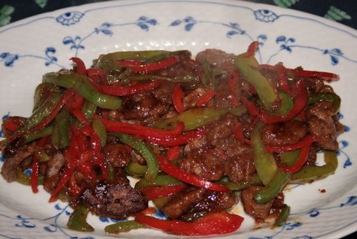 青椒肉絲(チンジャオロウスー)。ピーマンと牛肉の炒めもの。
