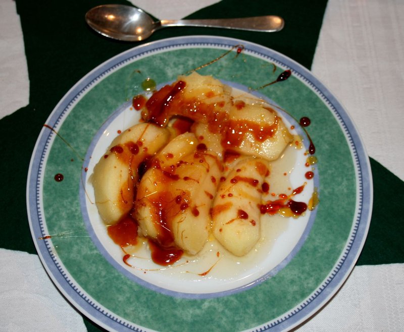 林檎のコニャックソース煮にキャラメルを掛けたもの。