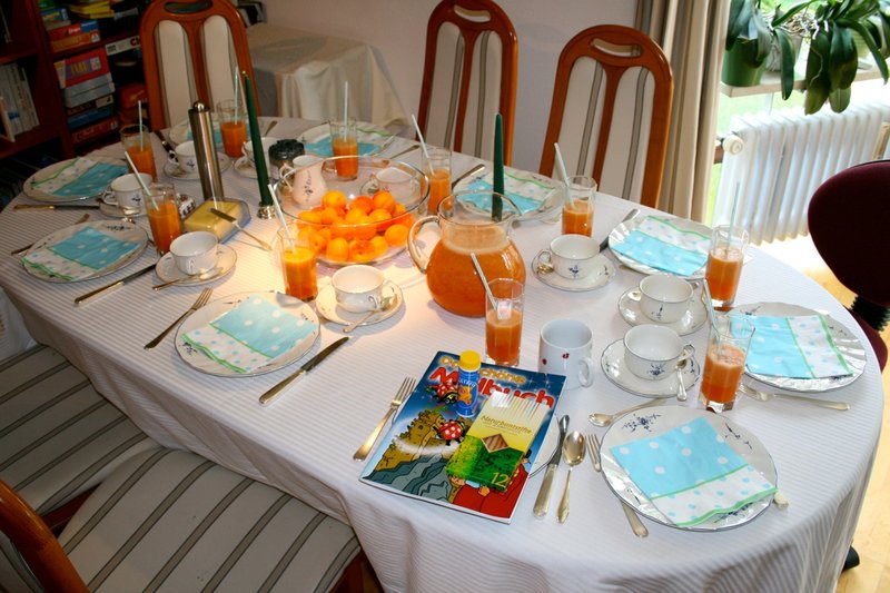 いつもながらのテーブルセッティング。二歳半の子供が来るので退屈しないようにシャボン玉とお絵かきの本を用意した。(^_^)