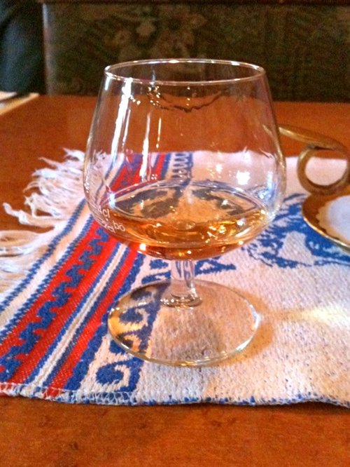 食後にブランディーが付く。料理で満腹になった胃に快い。(^_^)