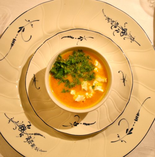 ニンジンのスープ。白く見えるのは山羊のチーズ。
