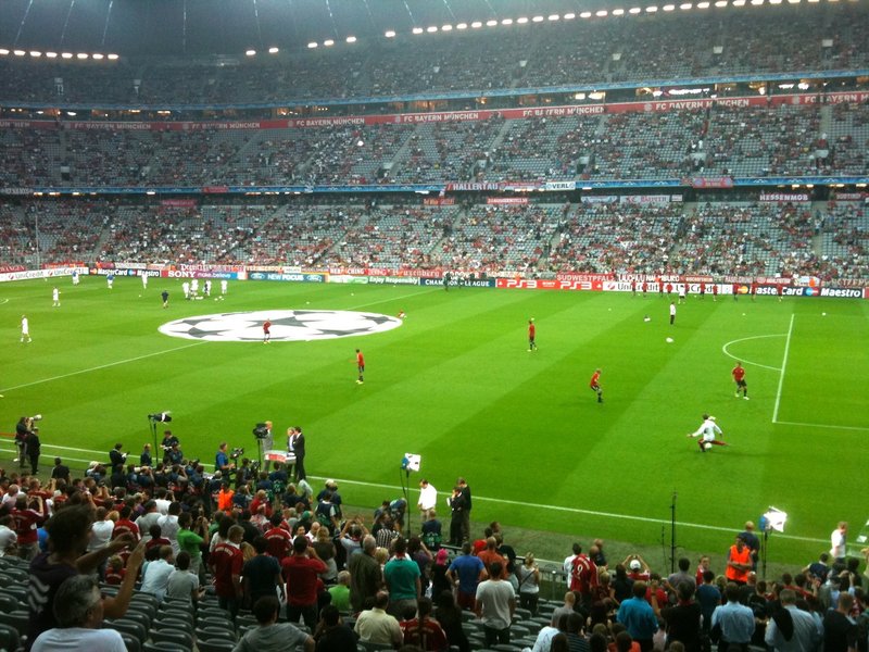 Allianz Arena に入ってすぐのウォーミングアップ風景。試合開始30分ほど前で客席はまだ埋まってなかったが、試合開始時は超満員。発表では66000人の入場者だった。