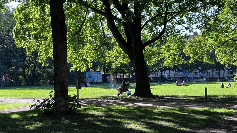 彼女と約束した時間にはずいぶん早かったので、彼女の住むアパートの近くの広場で Kindle 本を読みながらゆったりと過ごす。遅い午後の光を浴びた広場が美しかった。